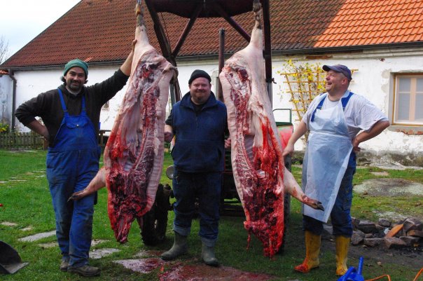 It is getting to be the time to kill pigs. Winter is coming, so it is the right time to cure meat without refrigeration. Also, if you kill the pigs now, you don't have to take care of them when the weather turns really bad and it gets hard to water the pigs (assuming you have a traditional farm, like the Mangalitsa producers in Austria).
